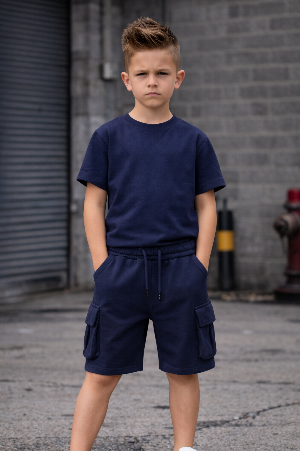 De opvallende cargozakken aan beide zijkanten geven de short een stoere uitstraling en maken hem extra praktisch. Ideaal voor school, buitenspelen of gewoon lekker relaxen.